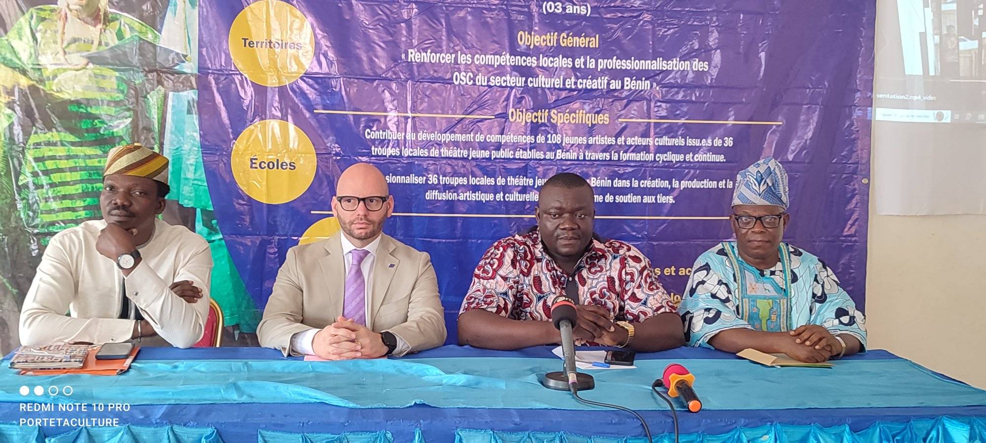 La salle des conférences du 2è arrondissement de la ville de Porto-Novo a servi de cadre au lancement du projet d’appui à la reconnaissance, à la professionnalisation, à la dynamisation des Osc du secteur culturel et créatif de la chaîne de spectacles jeune public au Bénin. Cette cérémonie de lancement qui s’est déroulée ce jeudi 7 mars 2024 a connu la présence de plusieurs personnalités notamment le représentant de l’Union Européenne et celui du maire de Porto Novo, des Directeurs départementaux de la police républicaine et de la culture ainsi que des acteurs culturels.