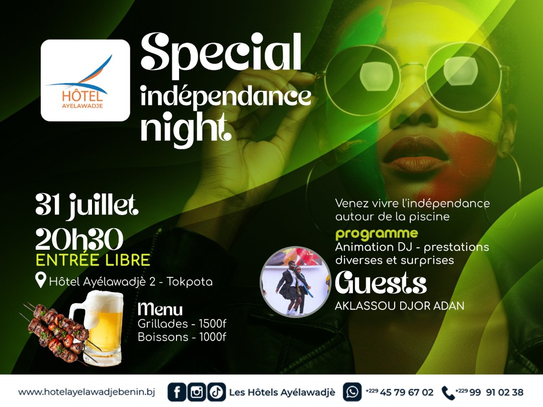 À la veille de la célébration du 1er août, date marquant l’accession du Bénin à la souveraineté internationale, la ville de Porto-Novo se prépare à vibrer au rythme d’un événement festif d’envergure. En effet, l’Hôtel Ayélawadjè 2, situé dans le quartier emblématique de Tokpota, accueillera ce mercredi 31 juillet à partir de 20h30 une soirée exceptionnelle baptisée « Spécial indépendance night », placée sous le signe du divertissement, de la convivialité et du patriotisme.